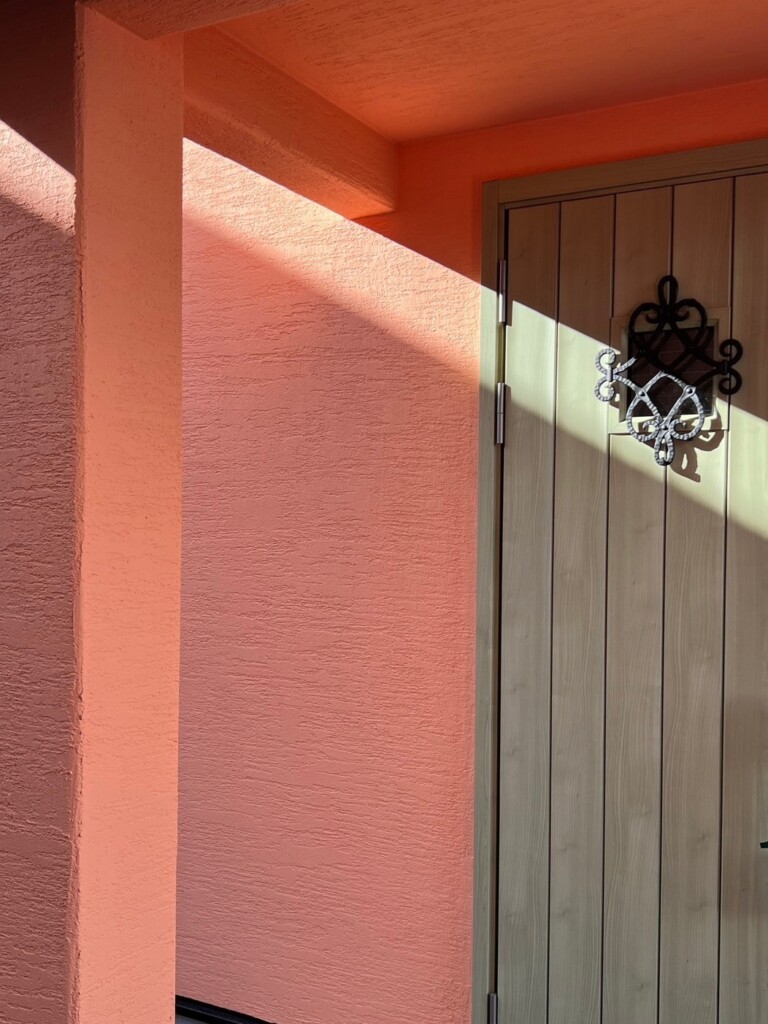 スペイン漆喰で仕上げたテラコッタカラーの外観は、